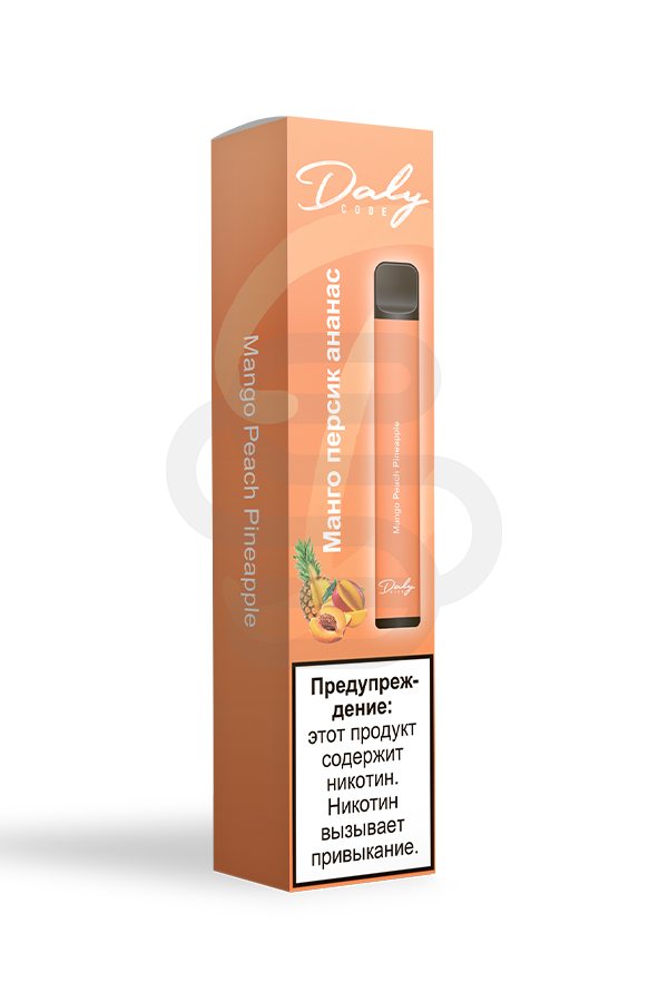 Daly Сode Mango Peach Pineapple (Манго, персик, ананас) – топовый фруктовый вкус с насыщенным кисло-сладким послевкусием. Натуральный аромат смузи из тропического манго, спелого персика и ароматного ананаса.