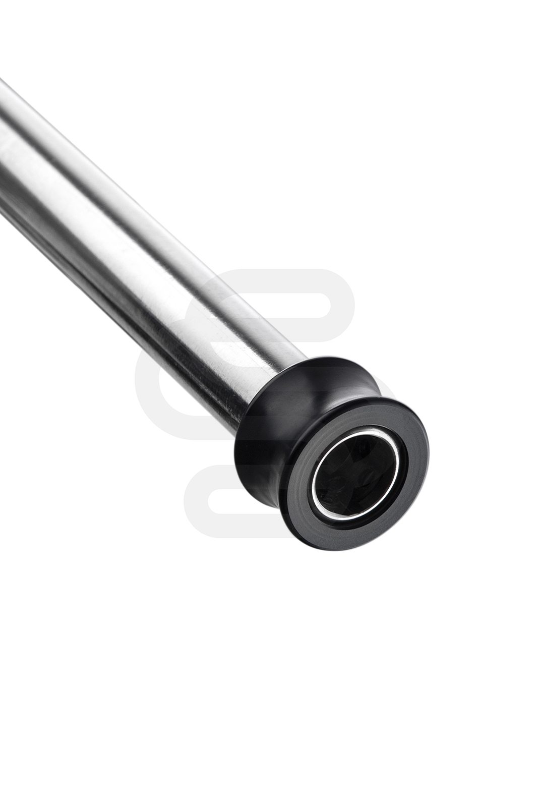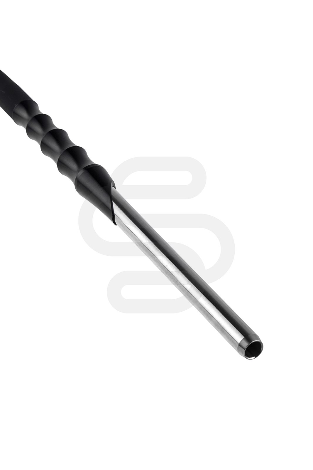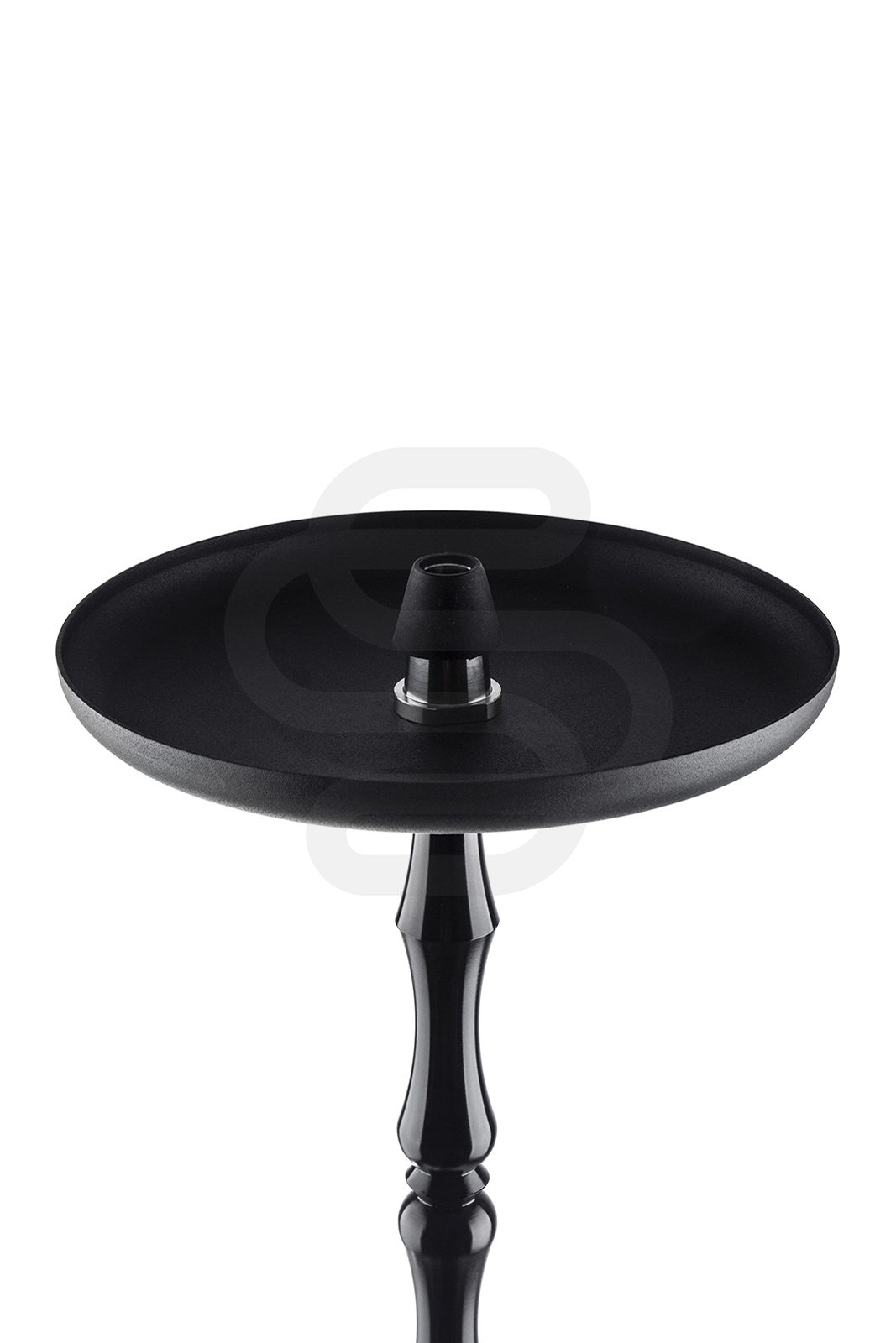 Все детали, контактирующие в водой, изготовлены из нержавеющей стали, основание — черный полиацеталь. Шахта и мундштук выполнены в одном стиле, имеют накладку из анодированного алюминия с покрытием из порошковой краски. Все детали произведены с особым вниманием, нет неровностей и зацепок. Удобная резьба позволяет с считанные секунды без проблем собрать кальян воедино. Кстати, в сборе кальян имеет среднюю высоту — 63 сантиметра.