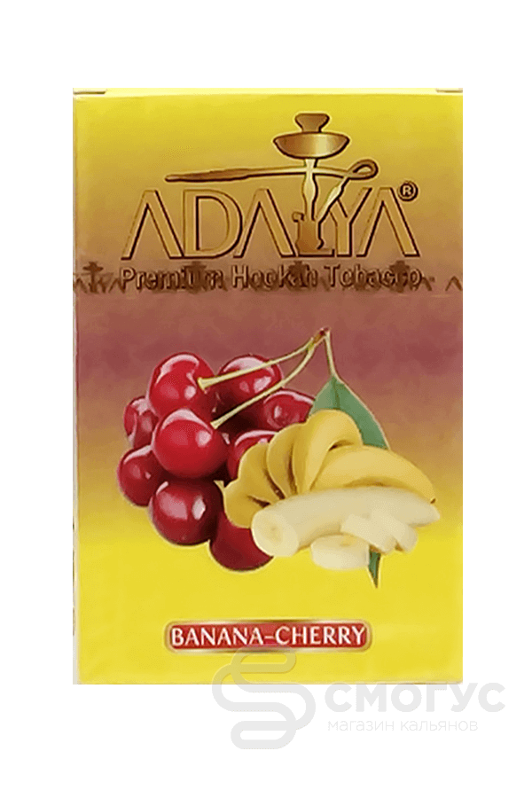 Adalya Banana-Cherry (Банан, Вишня) — микс сладкого спелого банана и чуть горьковатой ароматной вишни. Понравится любителям нежных бархатистых вкусов. Приятно и дымно курится.