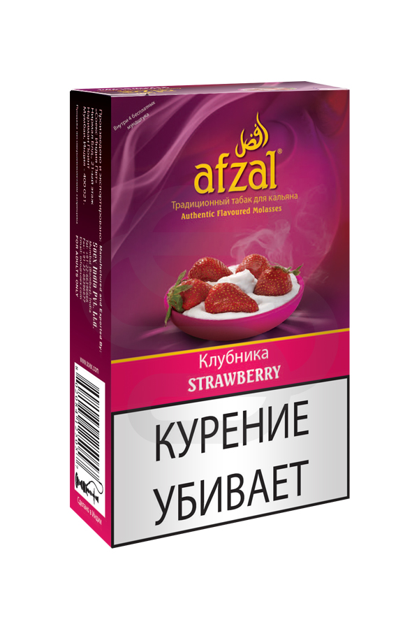 Afzal Strawberry (Клубника) — яркий насыщенный клубничный вкус. Хорошее начало дня или любой вечеринки. Отлично сочетается с многими табаками.