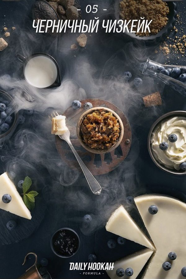 Daily Hookah 05 Черничный чизкейк — притягательный аромат популярного черничного чизкейка с легкими кислыми нотками спелых ягод.