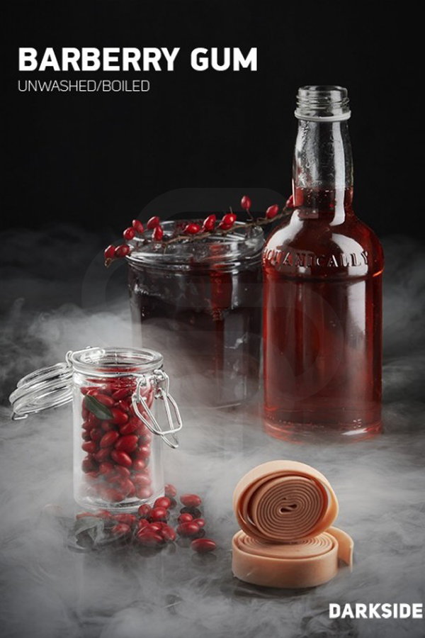 DarkSide Barberry gum (Барбарисовая жвачка) — это табак со сладким вкусом барбариски из детства — сладкий, сочный и слегка кислый вкус, который дополняется насыщенным ароматом барбариса, немного похож на вкусы сладких жвачек от других производителей табаков, но имеет неповторимые оттенки и аромат. Интересно раскрывается соло и приятен в смешении с некоторыми другими вкусами.