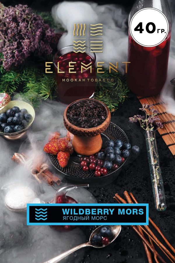 Element Вода Wildberry Mors (Ягодный морс) – идеальное сочетание кисленькой красной смородины, сладкой черники и сочной ежевики образуют приятный, насыщенный аромат. Приятный вкус оценят даже самые избирательные кальянщики.