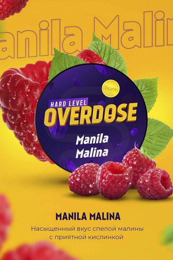 Табак Overdose Manila Malina (Филиппинская малина) –кисло-сладкий аромат спелой филиппинской малины родом из Азии.