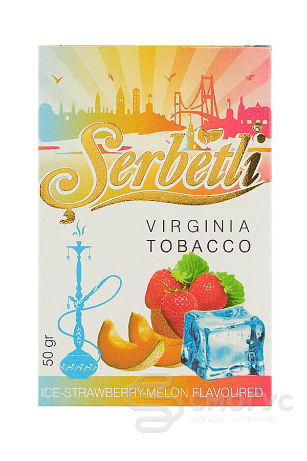 Serbetli Ice Strawberry Melon (Клубника и Дыня со льдом) — табак в котором сочетается популярная смесь клубники и дыни, придающих табаку нежную и сочную ягодно-фруктовую сладость с ментоловой прохладой. Микс является полноценным и курится без всяких добавок, однако и его можно разнообразить по своему вкусу.