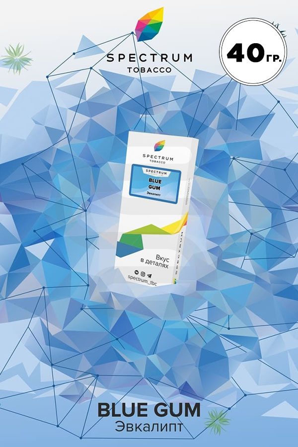Spectrum Blue Gum (Эвкалипт) —  яркий вкус вечнозеленого тропического растения. Легкая сладость отлично дополняется безграничной свежестью и необычными цветочными нотками. Приятный аромат в считанный секунды поднимет вам настроение и создаст приятную, расслабляющую атмосферу.