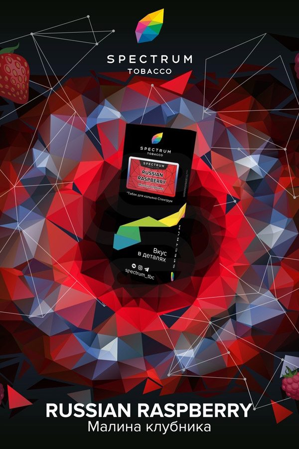 Spectrum Hard Russian Raspberry (Малина) — нежный аромат натуральный, спелой малины. Сочный плод ягоды только что сорвали с куста и отправили в чашу. Насыщенный вкус натуральный малины с выраженной кислинкой в послевкусии. Малина интересно раскрывается в десертных и коктейльных миксах.