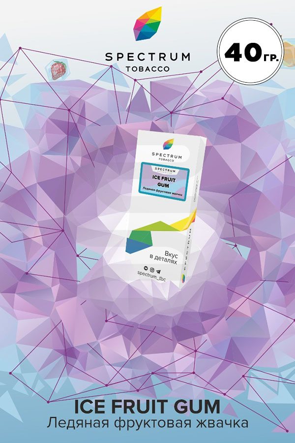 Spectrum Ice Fruit Gum (фруктовая жвачка с холодком) — яркий микс спелых, замороженных фруктов. Насыщенную сладость сменяет освежающая кислинка и приятный холодок в послевкусии. Пожалуй, классический вкус, который подойдет абсолютно всем без исключения.