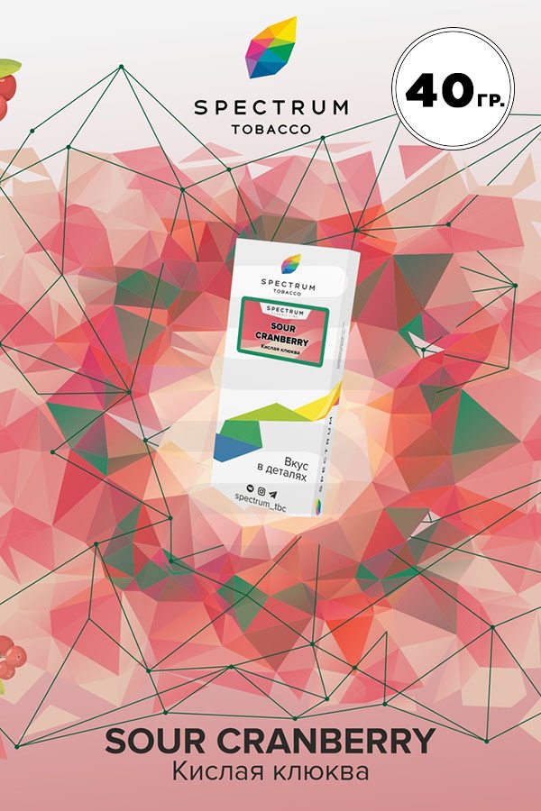 Spectrum Sour Cranberry (Кислая Клюква) — освежающий вкус кисленькой, красной клюквы. Простой вкус, который понравится всем любителям кислых ароматов. Подходит как для забива соло, так и для создания всевозможных гастрономических миксов.