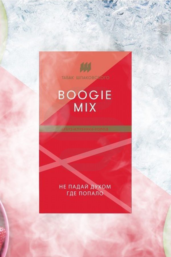 Табак Шпаковского Boogie Mix (Арбуз, клубника, холод) – летний коктейль сладкого арбуза, спелой клубники украшенных кусочками льда.