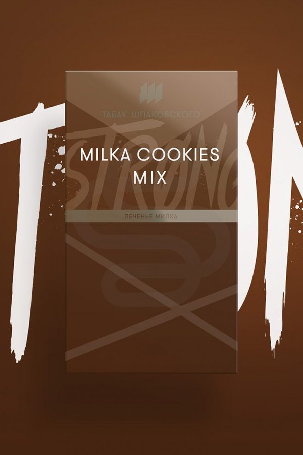Табак Шпаковского Strong «Milka cookies mix» (Шоколадное печенье) – нежный вкус сладкого, сливочного печенья с кусочками молочного шоколада.